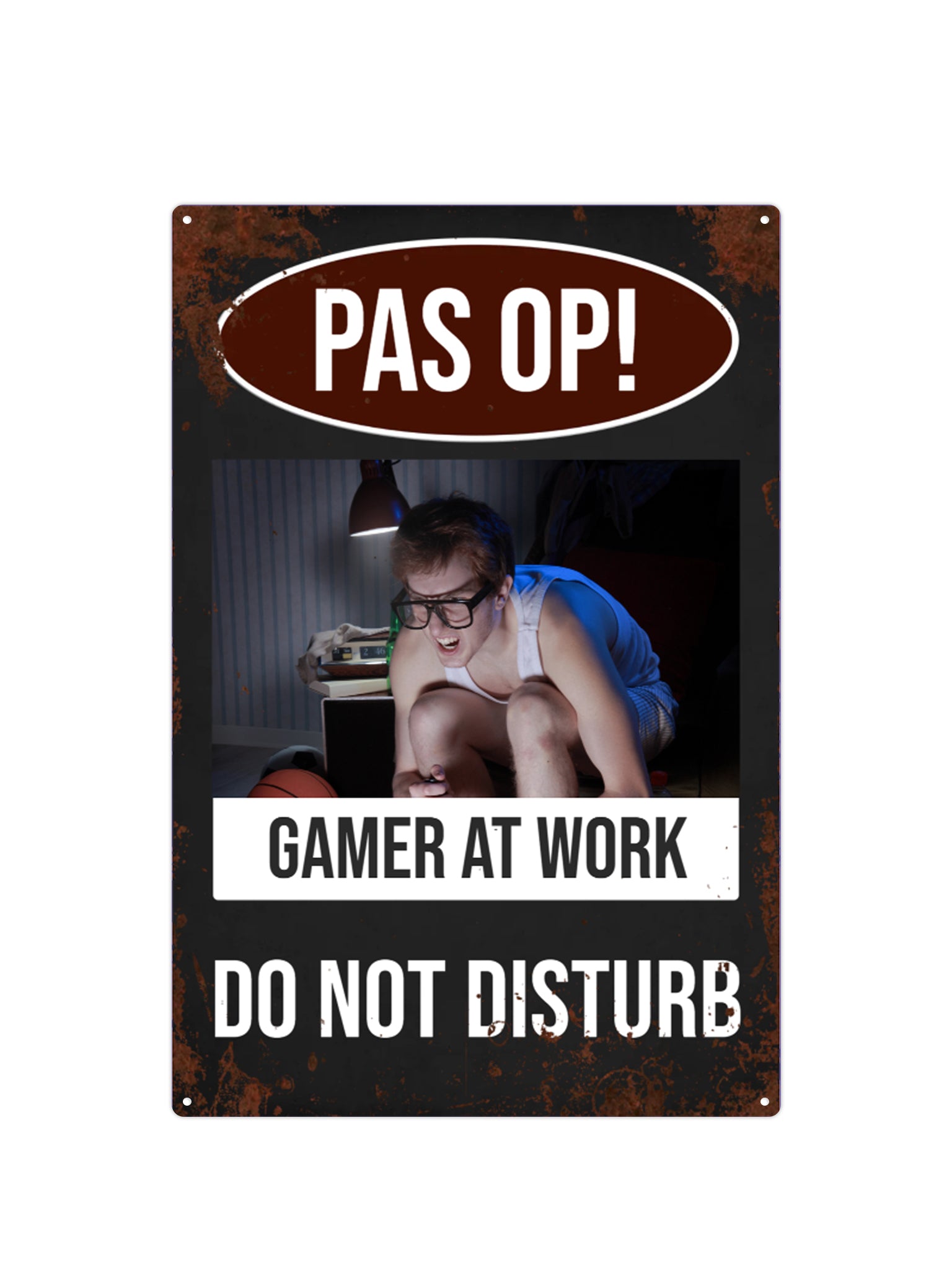 Gamer at Work - Met eigen naam en foto - Metalen Wandbord